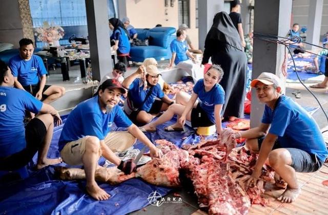 1. Ayu Ting Ting menyiapkan tim khusus yang diberi nama tim Tim Kurban Ayting untuk perayaan Idul Adha tahun 2022 ini. Kaos seragam warna biru membuat mereka tampak semakin kompak.